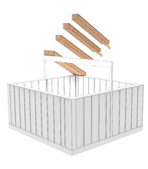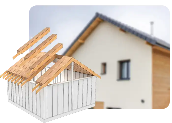 CELENO est un système de caisson de toiture chevronné préfabriqué en bois et isolé en paille, conçu pour répondre aux exigences actuelles en matière de performance thermique, de rapidité de pose et de confort d’usage.