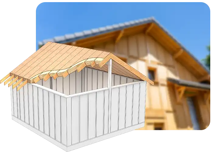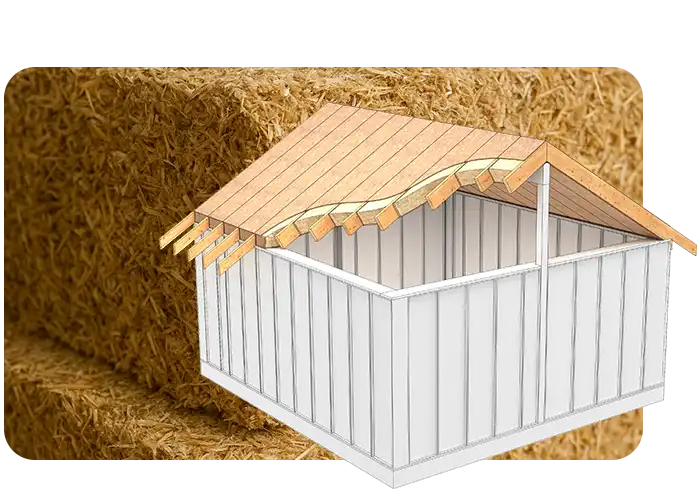 Chaque caisson chevronné CELENO est composé d’une structure bois intégrant un isolant en paille haute performance, assurant une excellente résistance thermique pour un excellent confort d’été.