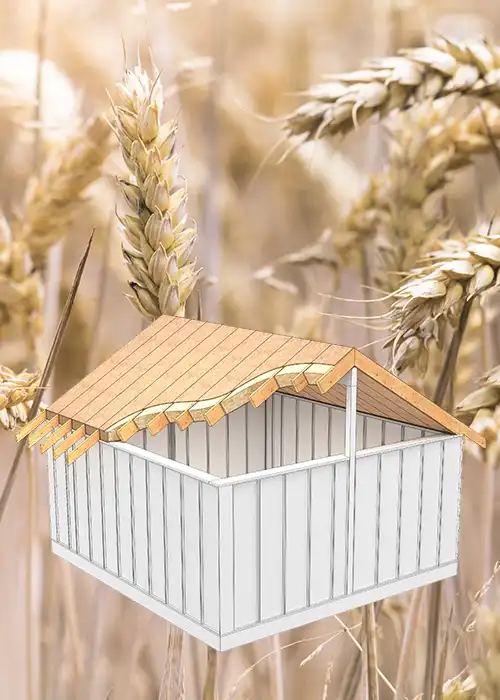 Chaque caisson chevronné CELENO est composé d’une structure bois intégrant un isolant en paille haute performance, assurant une excellente résistance thermique pour un excellent confort d’été.